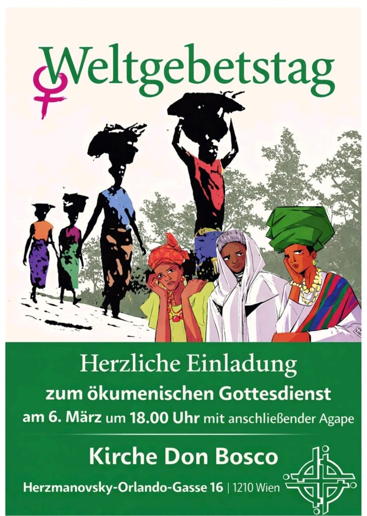 Unter dem Motto: „Kommt, bringt eure Last!“ laden Christinnen aller Konfessionen unseres Bezirks und unserer Pfarre am Freitag, 6. März 2026 um 18 Uhr zum ökumenischen Gottesdienst in die Kirche Don Bosco ein.