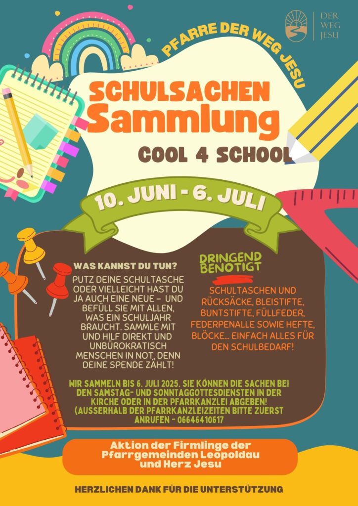 Die Firmlinge der Pfarrgemeinden Leopoldau und Herz Jesu Töllergasse starten eine wichtige Aktion: „Schulsachen-Sammlung“. Ziel ist es, Kindern aus sozial benachteiligten Familien den Schulstart zu erleichtern – unkompliziert, direkt und mit Herz.